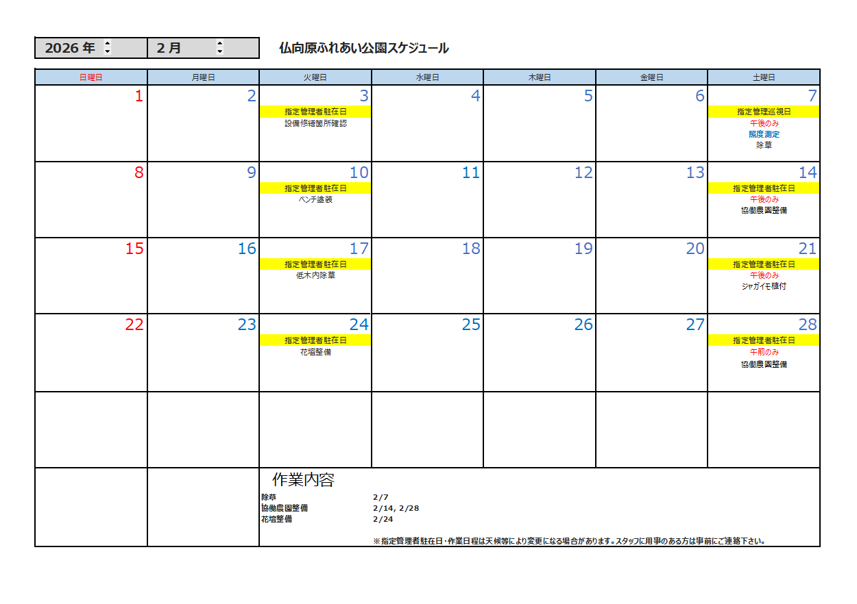 2月の公園スケジュール