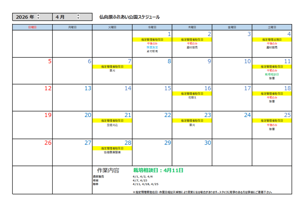 1月の公園スケジュールをアップします。 今年も残すところあと半月になりました。 公園では門松づくりに向けて準備を進めています。